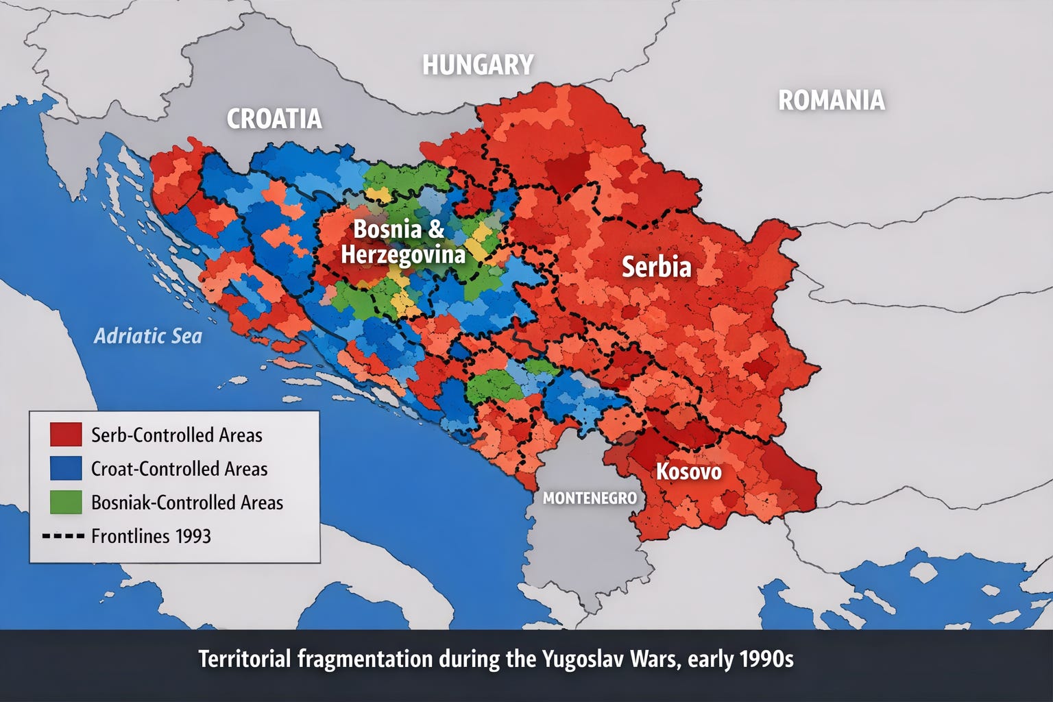 The second is fragmentation. The shared civic space dissolves. Communities separate formally or informally. Borders harden, whether on maps or in practice. The state shrinks, splits, or disappears.